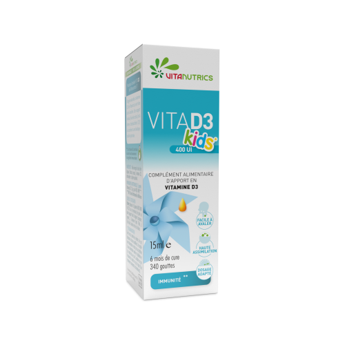 Pour un apport maximum et adapté aux besoins de chacun, nous avons développé une vitamine D3 naturelle avec 3 dosages différents. Une vitamine D3 dosée à 400 UI par goutte, spécialement adaptée pour les enfants. Nous vous conseillons 1 à 2 gouttes par jour. Une vitamine D3 dosée à 1000 UI et adaptée à toute la famille. Pour couvrir les besoins journaliers, nous vous recommandons 2 gouttes par jour.