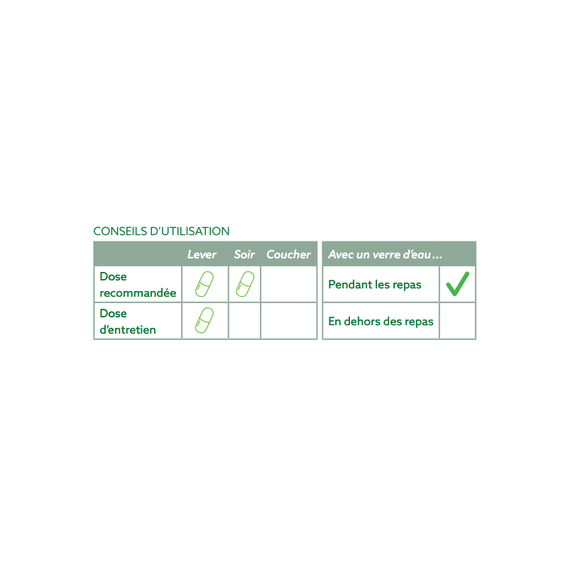 Durée de prise conseillée : 2 mois, renouvelables.