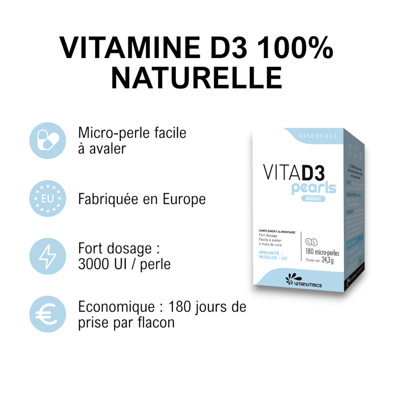 Découvrez également VITAD3 3000 UI PEARLS en 180 perles !
