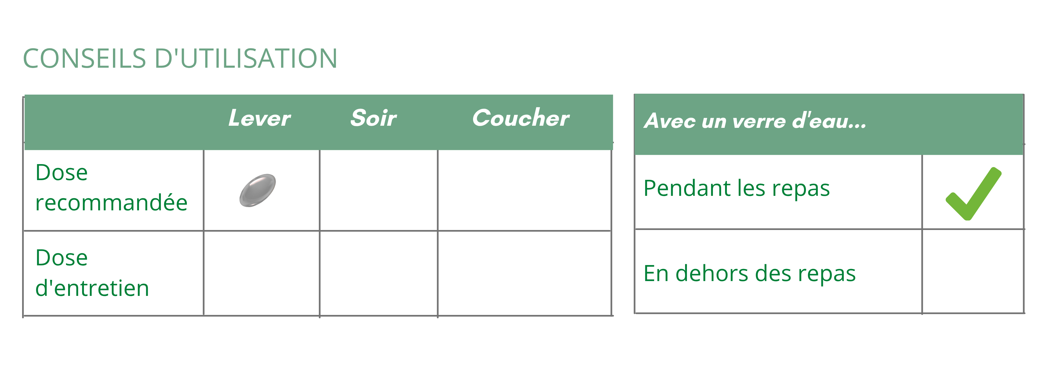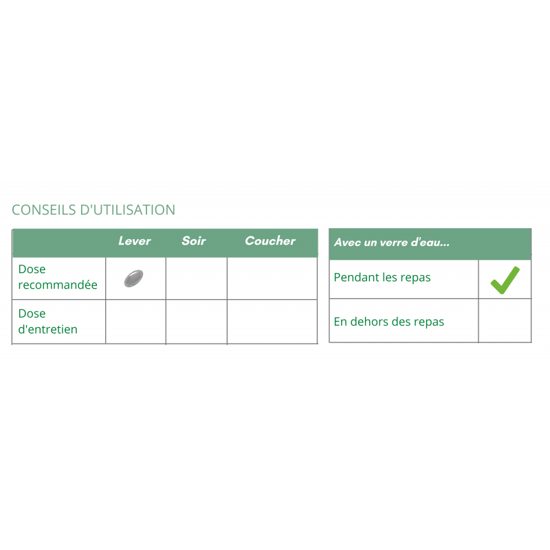 Complément alimentaire, ceci n’est pas un médicament. Ne pas dépasser la dose indiquée. Conserver à l’abri de la chaleur et de l’humidité. Ne se substitue pas à une alimentation variée et équilibrée et à un mode de vie sain. Tenir hors de portée des jeunes enfants.