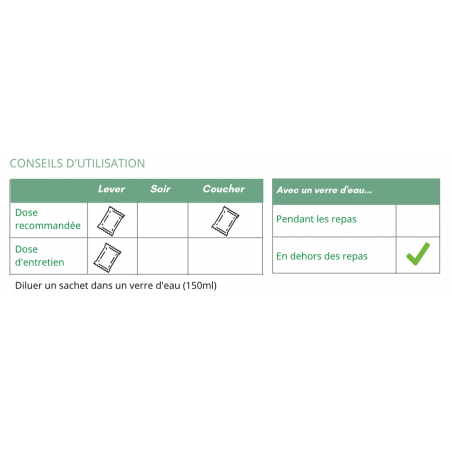 Conseil d'utilisation : versez le contenu du sachet dans un verre d'eau, ajoutez la boisson de votre choix (eau, thé, café, kombucha...), mélangez et dégustez !